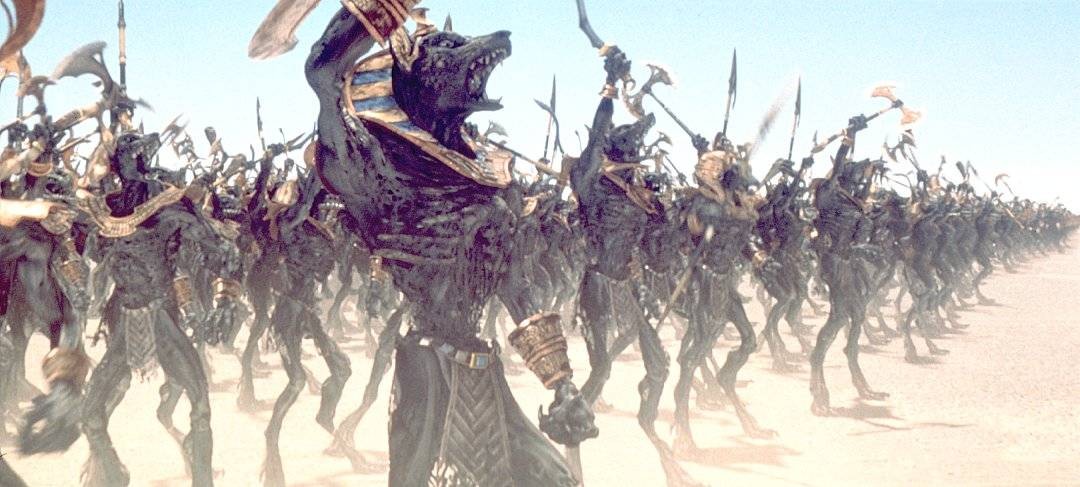고대 이집트 신화(아누비스, 스콜피온 킹)를 기반으로 하면서도 1930년대 제국주의 분위기, 박물관/비행선/기관총 등 모던 요소와의 조화롭게 작동했지만 이모텝 부활, 스콜피온 킹, 아누비스 군단, 전생 회상 등 지나치게 많은 설정이 한꺼번에 얽혀 메인 악당이 명확하지 않아 긴장감이 약해지는 부분도 있습니다. 특히 스콜피온 킹(드웨인 존슨)의 컴퓨터 그래픽 묘사는 당시에도 어색하다는 평 많았습니다. “고대의 저주와 현대의 가족애가 만난 스펙터클 모험극, 그러나 과유불급의 함정도 피하진 못했다.”
