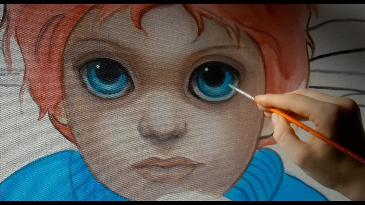 1958년, 미국 캘리포니아. 한 여성이 어린 딸을 데리고 집을 떠납니다. 그녀의 이름은 마거릿 울리츠, 재능 있는 화가지만 보수적인 시대 분위기 속에서 여성 예술가로 살아가는 데 큰 어려움을 겪고 있습니다. 그녀는 아이를 데리고 새로운 삶을 시작하기 위해 샌프란시스코로 향합니다. 그곳에서 마거릿은 한 매력적인 남자, 월터 킨을 만나게 됩니다. 월터는 자신을 화가라고 소개하며, 예술계에서 성공하고 싶어 하는 야망을 드러냅니다. 두 사람은 급속도로 가까워져 결혼하게 되고, 마거릿은 그의 아내로서, 그리고 조용한 화가로서의 삶을 시작합니다. 마거릿은 자신만의 독특한 스타일로, 크고 슬픈 눈을 가진 아이들을 그리는 그림을 지속해서 창작합니다. 이 그림들은 점차 사람들의 눈길을 끌게 되며, 특히 월터는 이 작품들이 상업적으로 성공할 수 있음을 직감합니다. 하지만 그는 작품의 진짜 화가가 마거릿이라는 사실을 숨긴 채, 자신의 이름으로 그림을 판매하기 시작합니다. 처음에는 마거릿도 남편을 돕는다는 생각으로 묵인하지만, 그림들이 큰 인기를 끌며 월터가 점점 언론과 대중의 주목을 받게 되자, 그녀는 점차 불안과 분노에 사로잡히게 됩니다. 월터는 마거릿이 집에서 그림을 계속 그리도록 강요하고, 마치 예술공장의 감독처럼 그녀를 지배하기 시작합니다. 마거릿은 자신의 정체성과 예술이 철저히 무시되는 상황 속에서 고통을 받지만, 딸과 생계 때문에 침묵을 강요당합니다. 세월이 흐르며 마거릿은 점차 자신의 그림을 되찾고 싶다는 강한 욕망을 느낍니다. 결국 그녀는 월터와의 결혼생활을 청산하고 하와이로 떠나 새로운 시작합니다. 그곳에서 그녀는 자신의 실체를 밝히기 위해 용기를 내어 언론에 진실을 고백합니다. 하지만 월터는 이를 부정하며 법적 싸움으로 맞섭니다. 결정적인 순간, 법정은 두 사람 모두에게 법정에서 직접 그림을 그려보라는 명령을 내립니다. 마거릿은 조용히 그림을 완성하는 반면, 월터는 머뭇거리며 끝내 아무것도 그리지 못합니다. 이 장면은 모든 진실을 세상에 드러내는 결정적인 계기가 됩니다. 결국 마거릿은 승소하게 되고, 자신의 이름을 되찾습니다. 영화는 그녀가 진정한 예술가로서 독립적인 삶을 살아가는 모습으로 마무리됩니다.