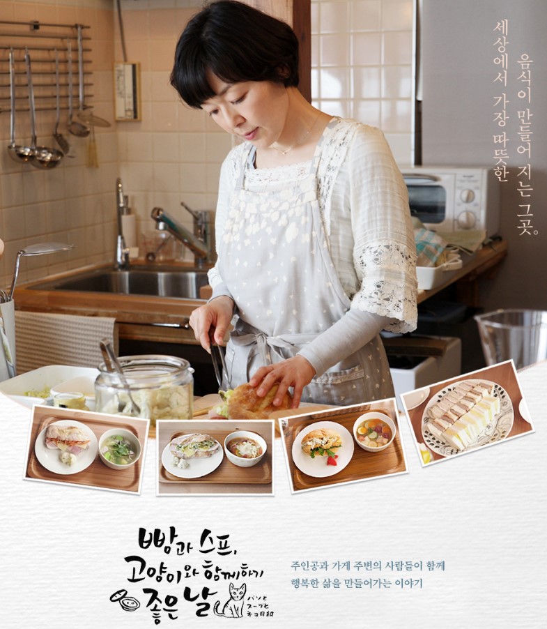 주인공 아카네 아키코는 출판사에서 일하는 중년의 여성으로, 경력도 능력도 있지만 회사의 분위기나 상사의 태도에 회의감을 느끼고 있습니다. 그러던 중 그녀의 어머니가 갑작스럽게 세상을 떠나고, 어머니가 운영하던 작은 식당이 남겨집니다. 아키코는 회사를 그만두고, 이 식당을 물려받기로 결심합니다. 하지만 그녀는 예전처럼 밥과 반찬을 차려 내는 식당이 아니라, 간단한 수프와 갓 구운 빵을 내는 카페 스타일의 가게로 바꾸기로 합니다. 이때부터 아키코의 인생이 조용히 바뀌기 시작합니다. 그녀는 고양이 한 마리를 데리고 살게 되는데, 이 고양이는 원래 어머니가 돌보던 길고양이였습니다. 처음에는 거리감을 두지만, 점점 서로의 존재에 익숙해지고, 아키코에게는 고양이조차도 소중한 삶의 일부가 됩니다. 카페를 운영하며 만나는 손님들은 단순한 고객이 아니라 아키코와 대화를 나누고 감정을 교류하는 사람들입니다. 특히 이웃의 ‘야나기’와의 대화에서는 세대를 넘는 따뜻한 우정이 피어나며, 어머니를 잘 알고 지냈던 동네 사람들과의 관계 속에서 삶과 죽음, 기억과 상실에 대한 사색이 이어집니다. 음식은 단순한 ‘식사’가 아닌, 마음을 전달하는 매개체로 그려집니다. 아키코가 준비한 빵과 수프는 손님의 하루를 바꾸고, 그 역시 아키코의 삶을 풍요롭게 만들어 줍니다.