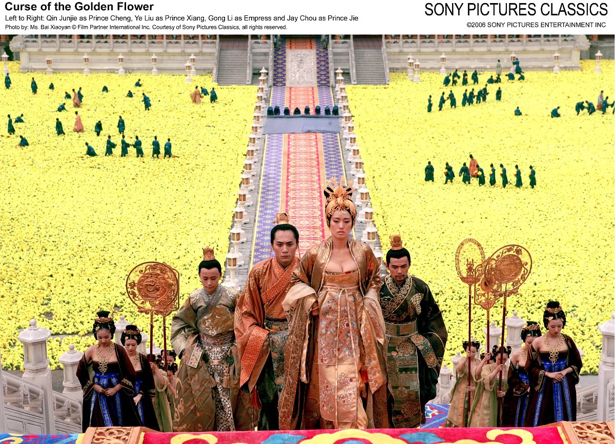 영화는 중양절 축제를 앞둔 후당의 황궁을 배경으로 시작됩니다. 오랜만에 북방 국경에서 둘째 아들 원걸(주걸륜)이 돌아오면서 황제(주윤발)와 황후(공리), 그리고 세 아들이 한자리에 모입니다. 겉보기에는 평화로운 가족의 재회처럼 보이지만, 그 이면에는 숨 막히는 긴장감이 감돌고 있습니다. 황제는 매일 황후에게 정해진 시간에 약을 먹게 합니다. 황후는 이 약에 독이 들어있음을 직감하고, 황제를 향한 복수심을 키워갑니다.